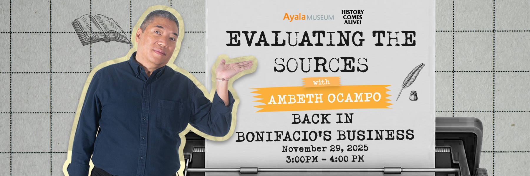 We’re starting off the holidays with a little bit of history with Professor Ambeth Ocampo in this year’s installment of History Comes Alive! We’ll be looking through the primary sources that make up what we know about two historical figures, Andres Bonifacio and Manuel Quezon. This page is for purchasing tickets to Back in Bonifacio's Business, giving you access to the November 29 lecture only. This is also inclusive of museum admission.